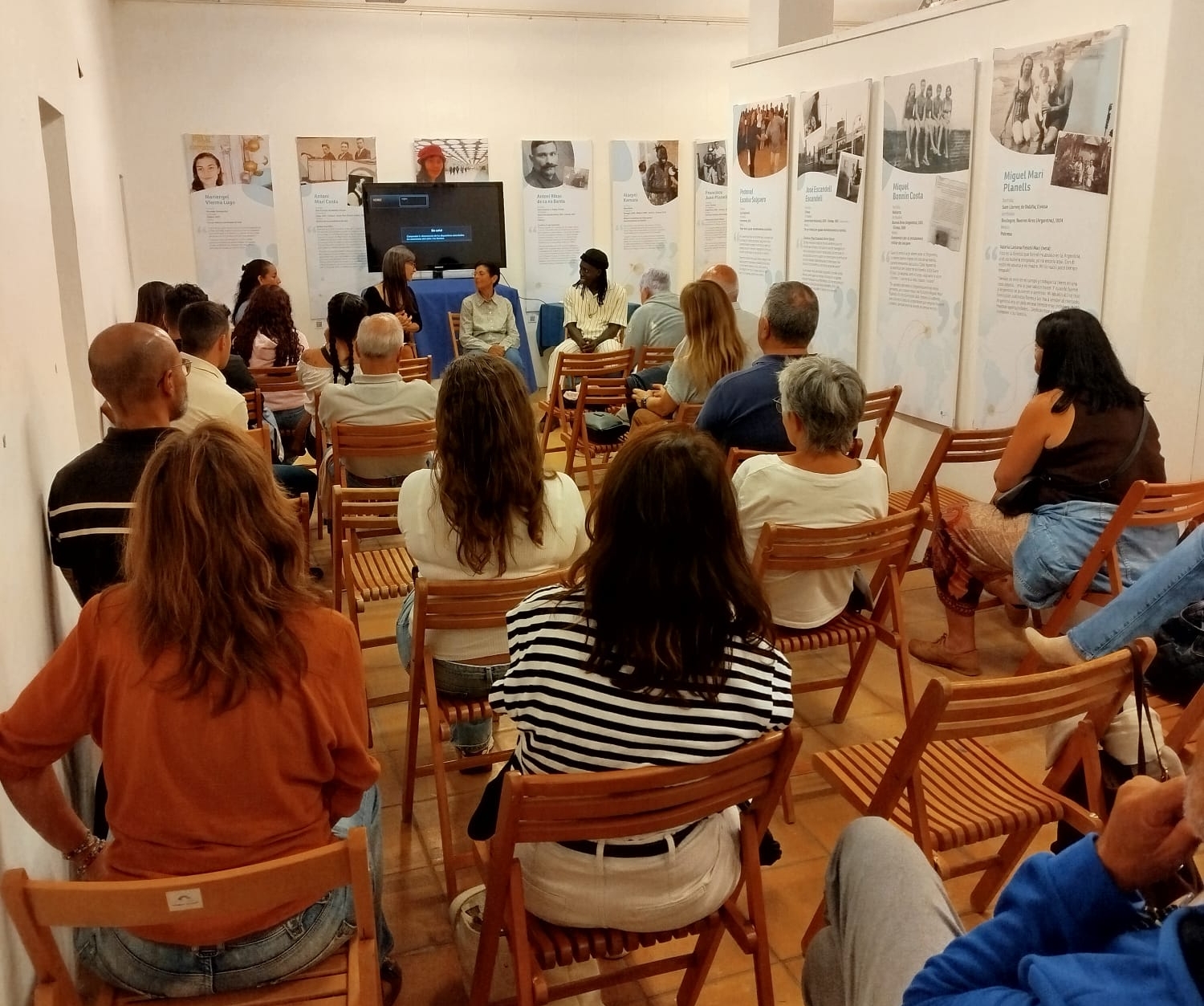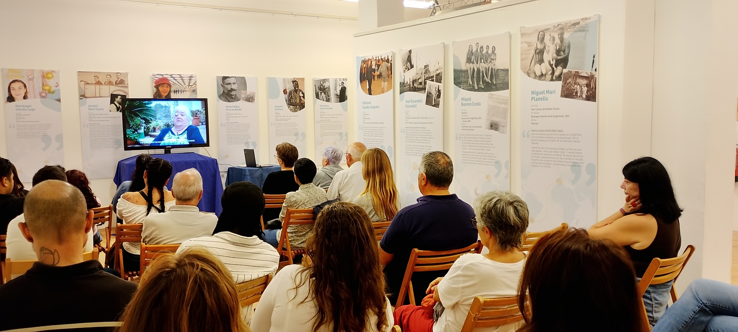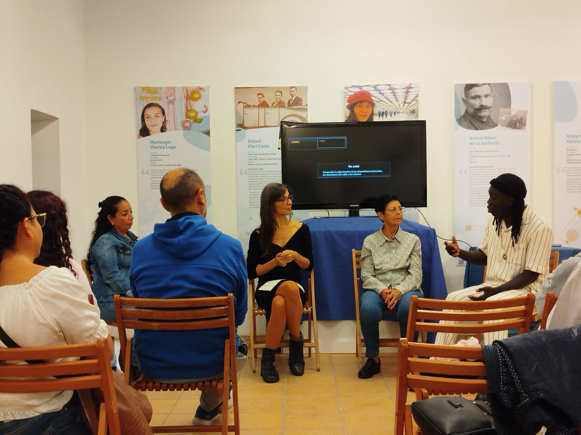 El pasado 17 de octubre en el Centro Cultural Sa Punta des Molí (Sant Antoni) disfrutamos de una nueva proyección del audiovisual de la exposición “Històries de migracions. Eivissa i Formentera, terra de sortida i arribada” y un coloquio con tres de sus protagonistas, todos residentes en el municipio de Sant Antoni: Margarita Torres, sobrina de Catalina Torres, quien migró de Ibiza a Argel en 1929; Alseny Kamara, original de Mauritania y residente en la isla desde 2018 y Reyna Burgos, original de Ecuador, desde donde emigró hacia Ibiza en 2002.
